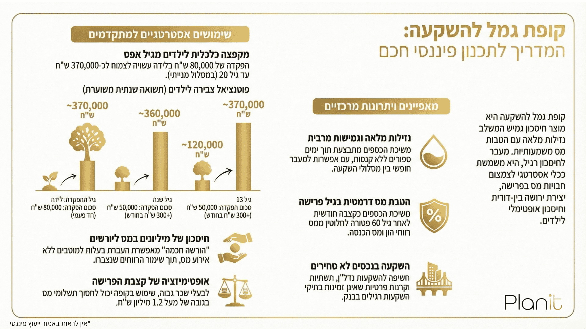 בקופת גמל להשקעה ההטבה הזו מתבטאת בעיקר בשלבים המאוחרים יותר של החיים, ובמיוחד כאשר משלבים את המוצר כחלק מתכנון פרישה ולא כחיסכון עצמאי.